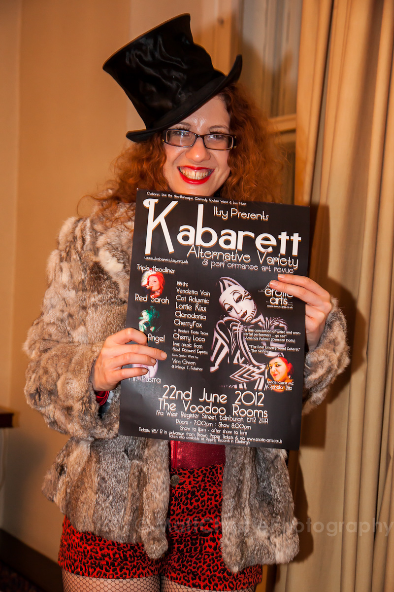 I very much enjoyed shooting this fabulous evening’s entertainment, but I do have a vested interest as my girlfriend was reading one of her stories. It was part of the Edinburgh Festival of Erotic Arts, there were all sorts of interesting things happening over the weekend. The show included performances from Vivid Angel, Mr Pustra, Vendetta Vain, Cat Aclysmic, Cherry Loco, Cherryfox, Black Diamond Express, the lovely Vina Green & a showstopping performance by Lottie Kixx & Clanadonian, all held together admirably by Dee Itsy in the first half, & Ophelia Bitz in the second.