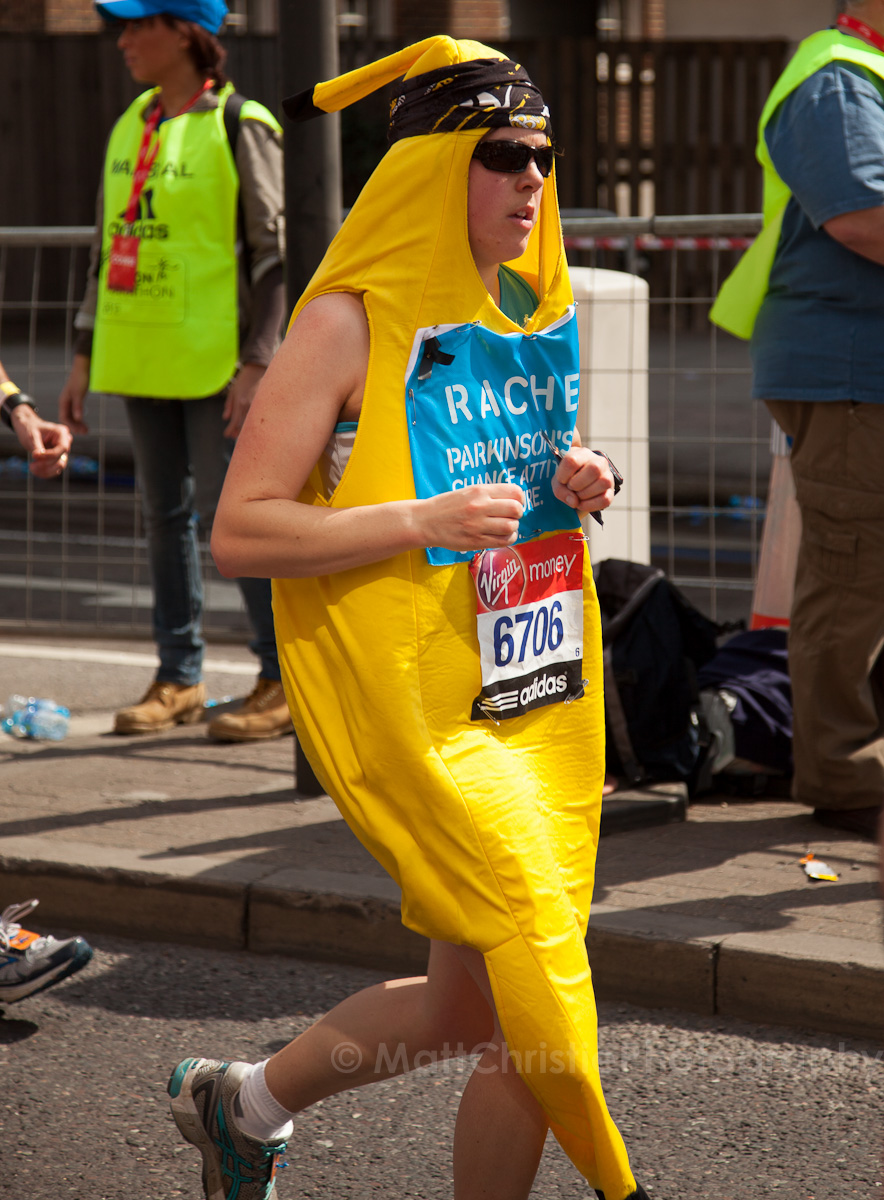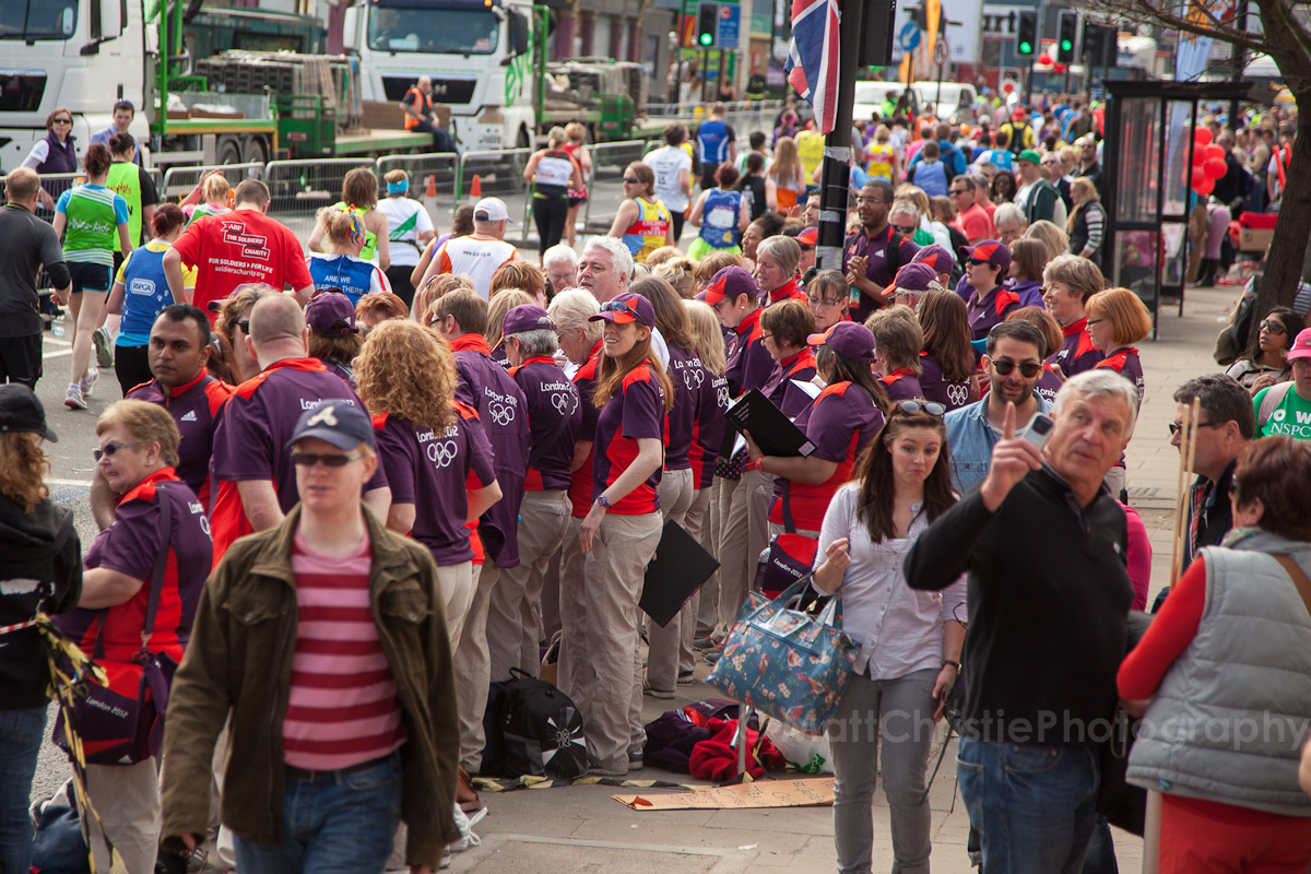 The London Marathon goes with 50 yards of my house (twice!) along The Highway, so it’d have been rude not to pop along & take a few photos. I chose the 2nd pass-by, at 22 miles, as I thought the photos would be more interesting later in the race. It was a really busy spot, with a friendly encouraging crowd, & even a choir of Gamesmakers from the Olympics singing the runners along their journey.