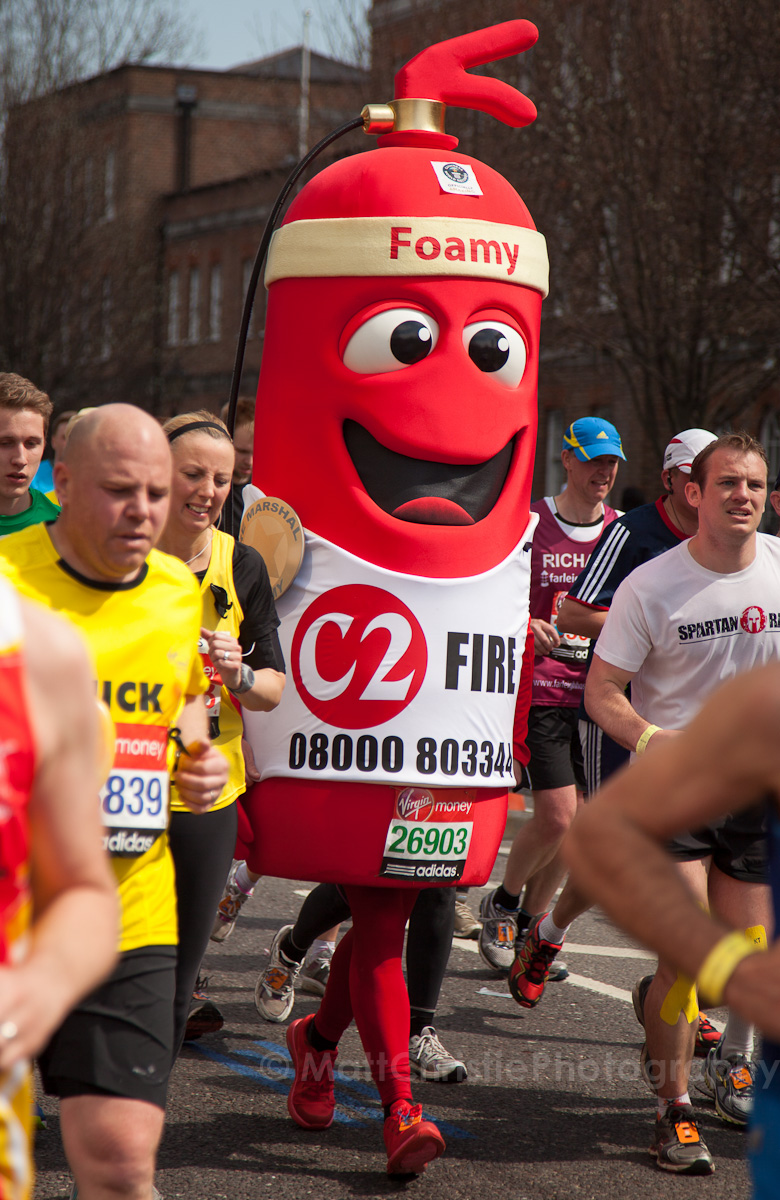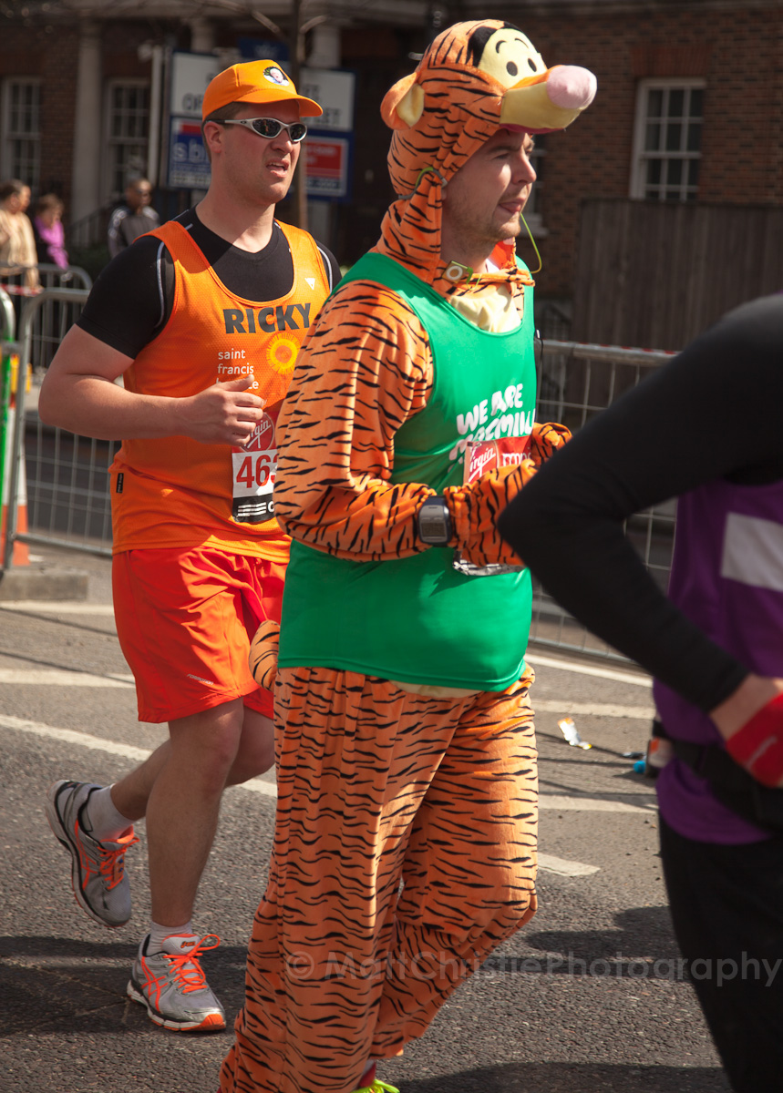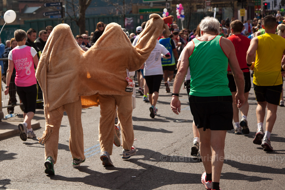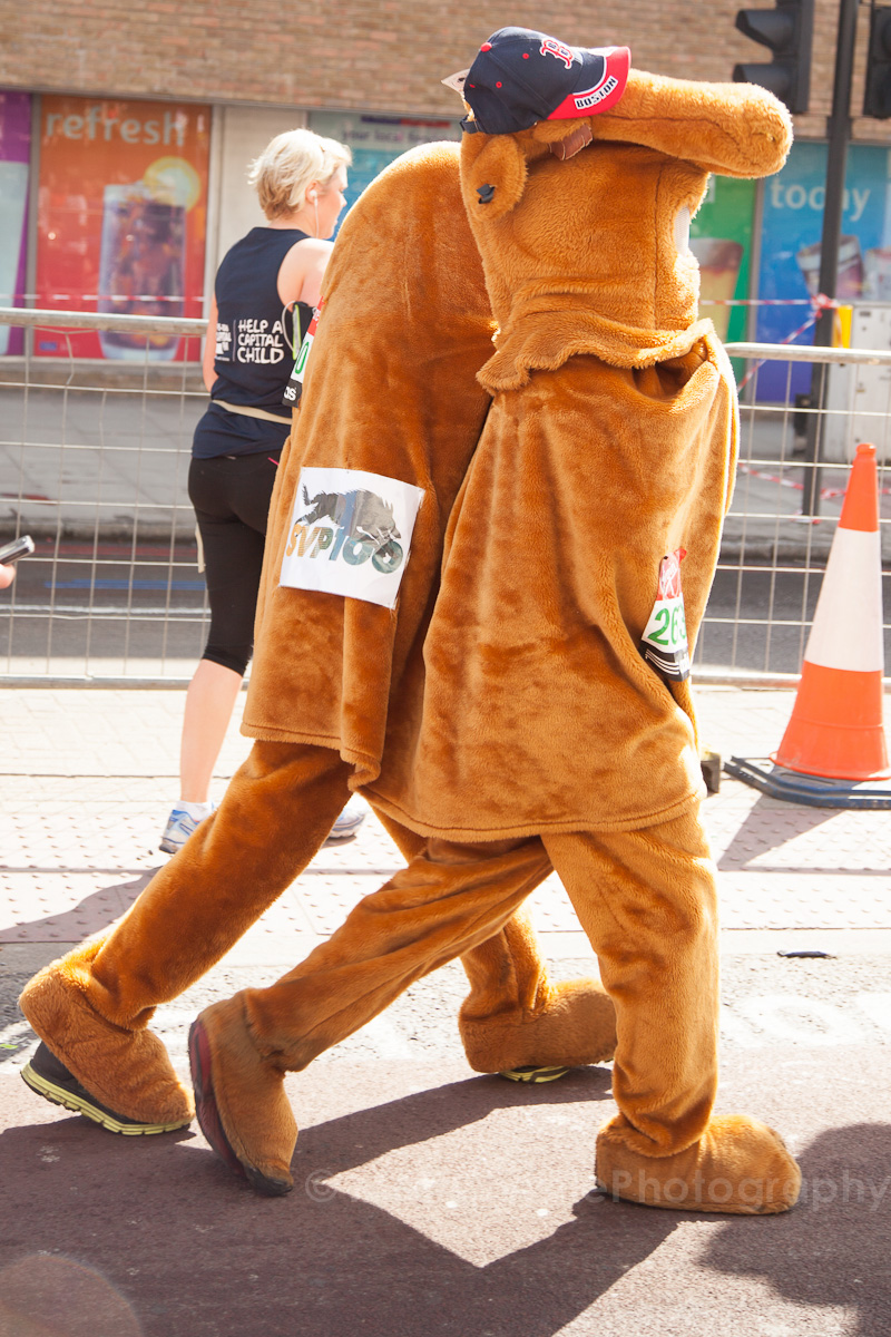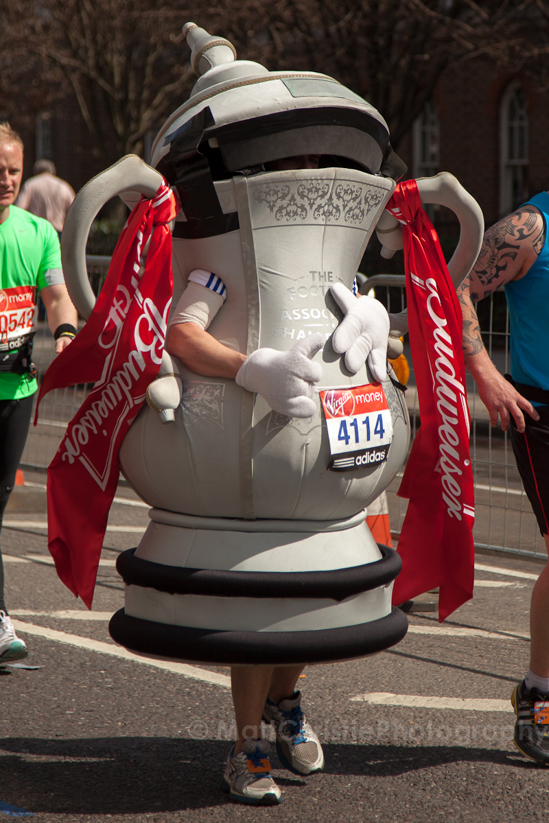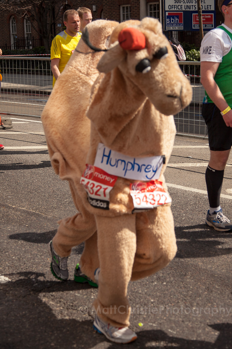 Some of the outfits were incredible, it’s hard to believe that people can run 26 miles in the first place, let alone dressed as a womble! I also saw a 7 foot fire extinguisher, an 8 foot shark, various fruit & vegetables, a honey monster, an FA Cup, several superheroes, 2 camels (someone ran 26 miles as the back end of a camel!) , some rhinos, hundreds of fairies and many many more.