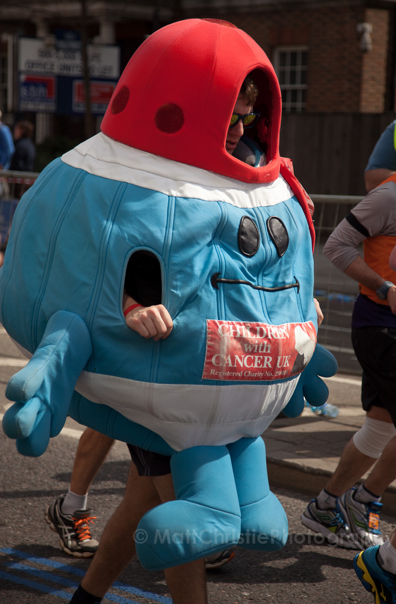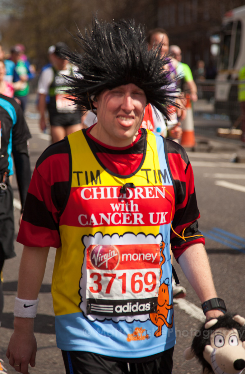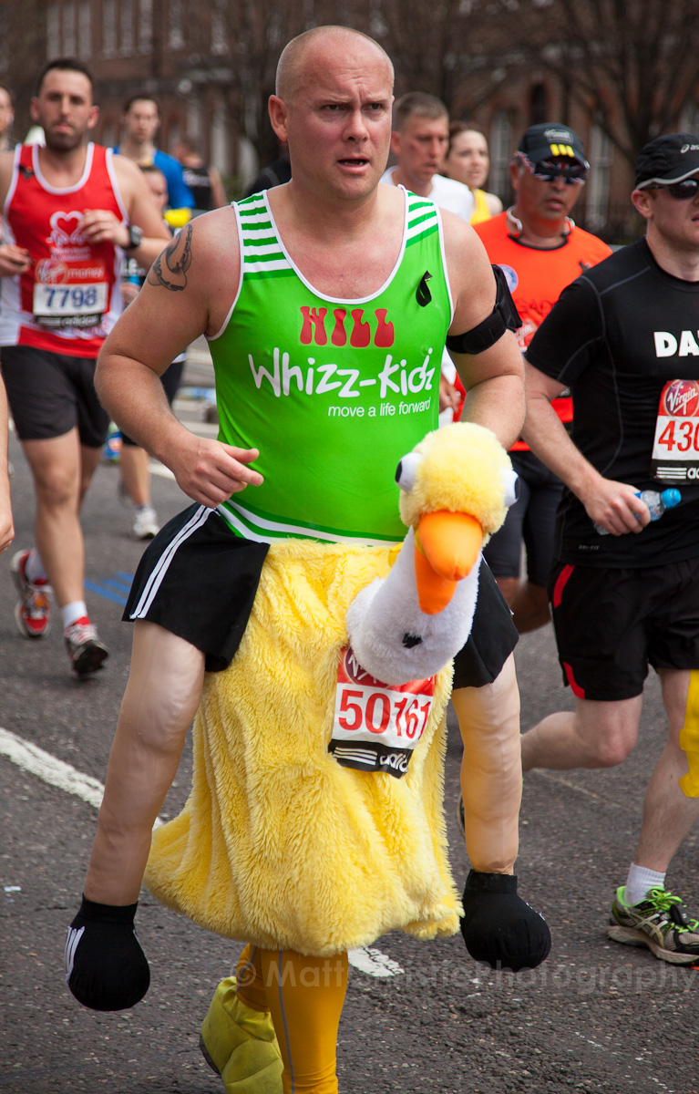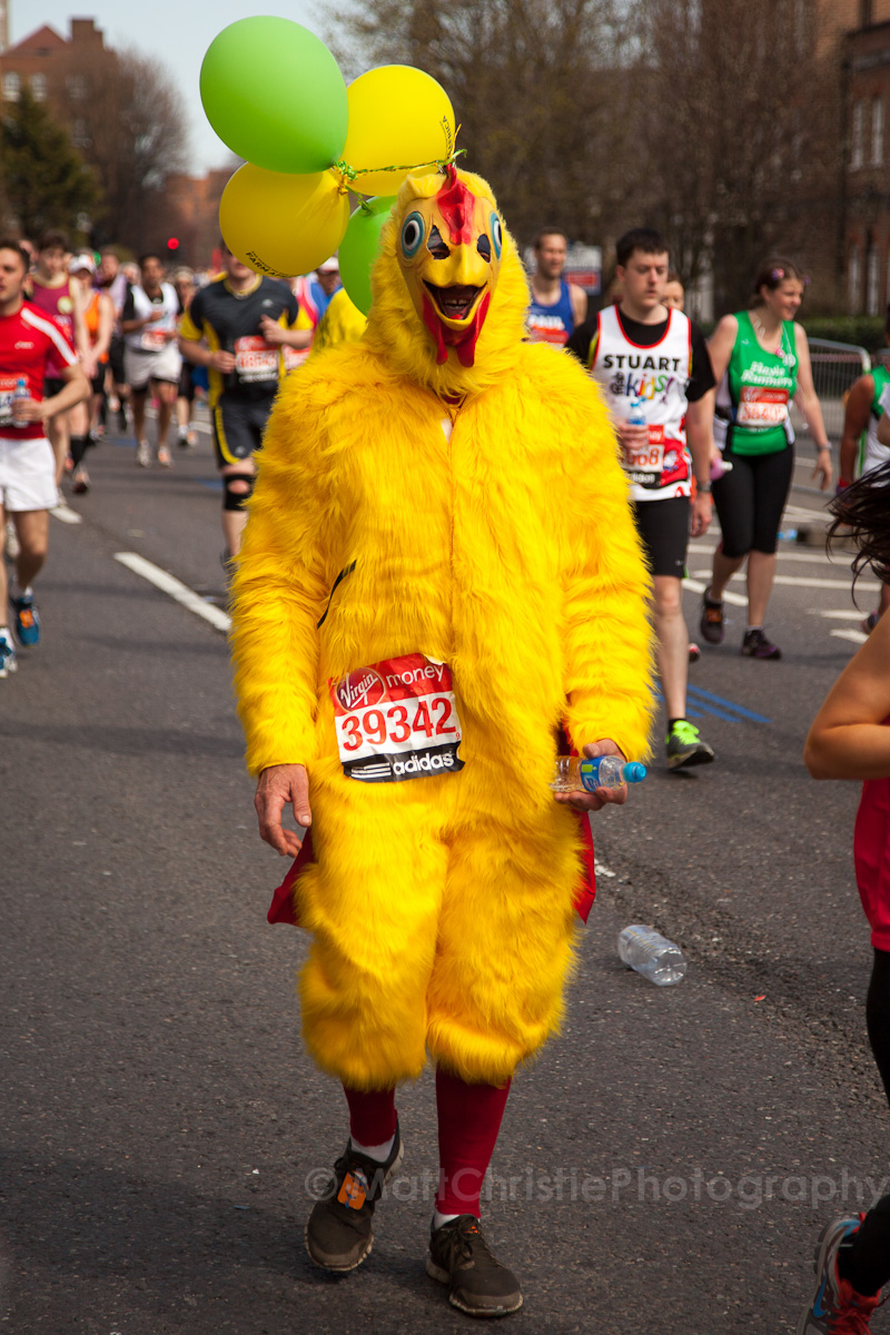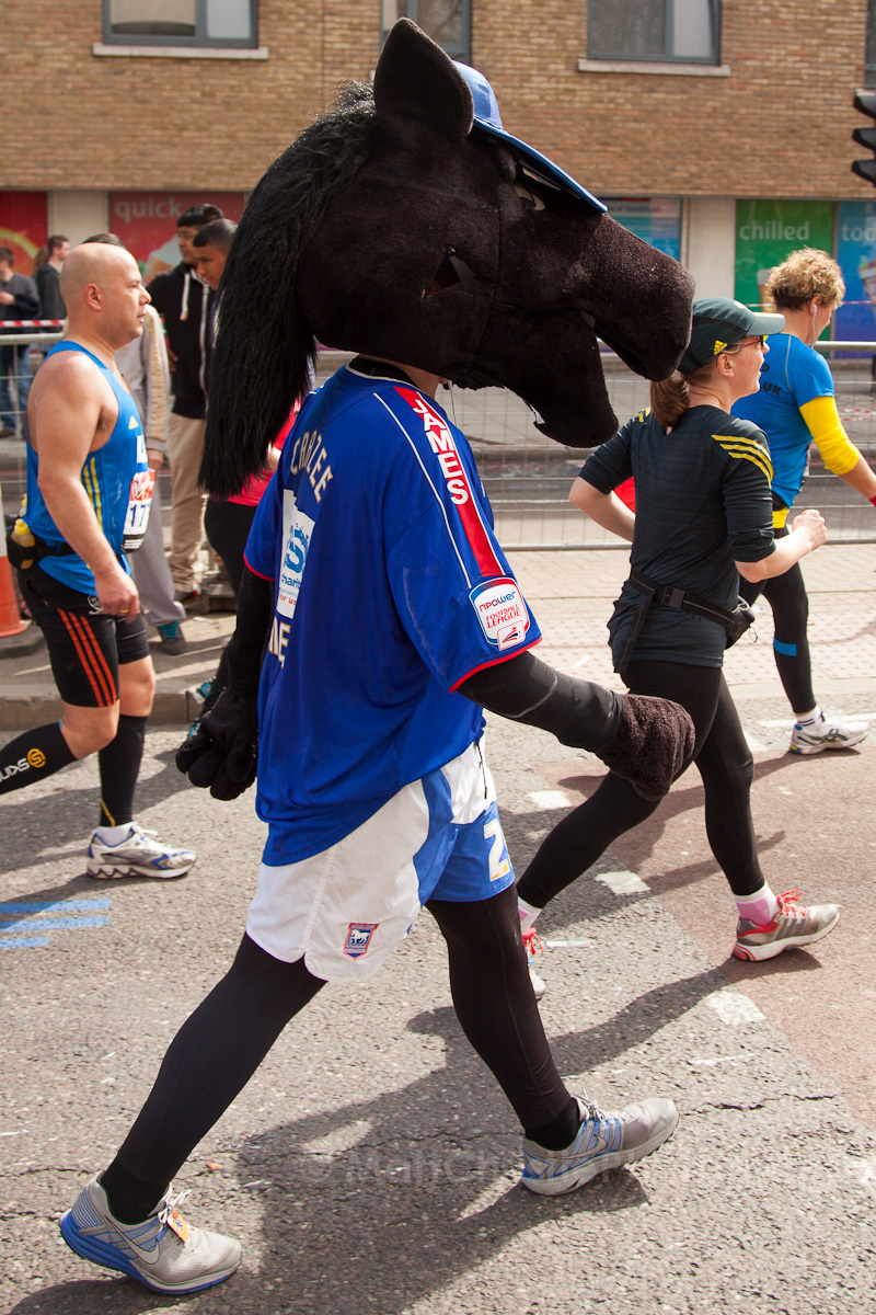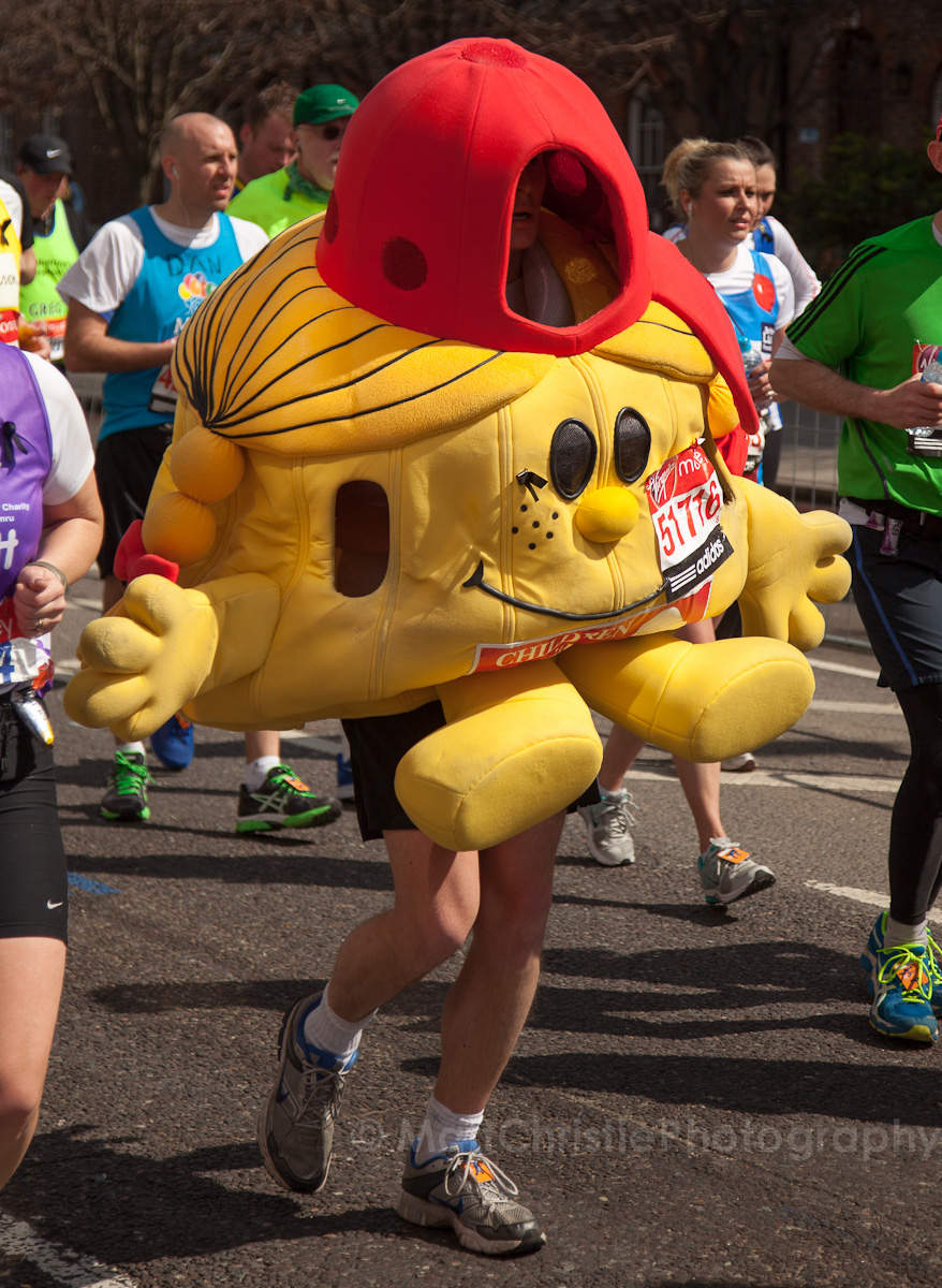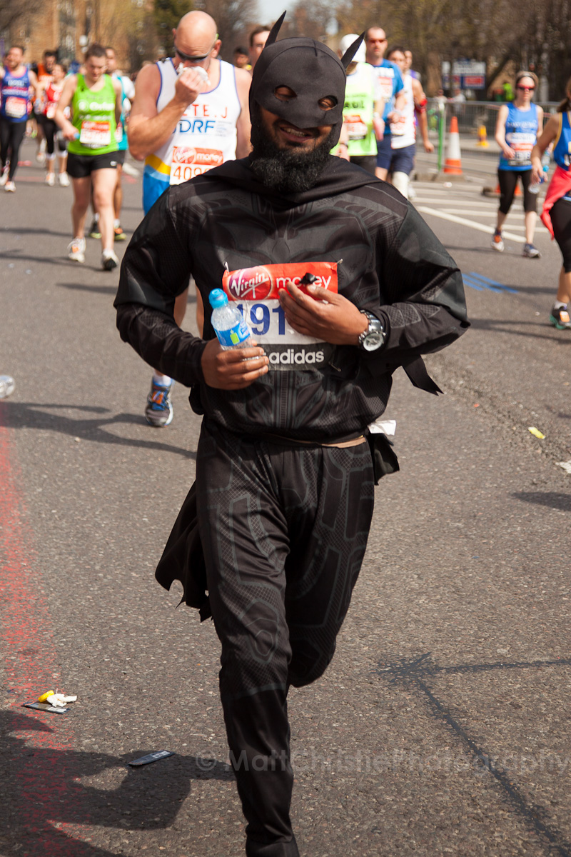 Some of the outfits were incredible, it’s hard to believe that people can run 26 miles in the first place, let alone dressed as a womble! I also saw a 7 foot fire extinguisher, an 8 foot shark, various fruit & vegetables, a honey monster, an FA Cup, several superheroes, 2 camels (someone ran 26 miles as the back end of a camel!) , some rhinos, hundreds of fairies and many many more.
