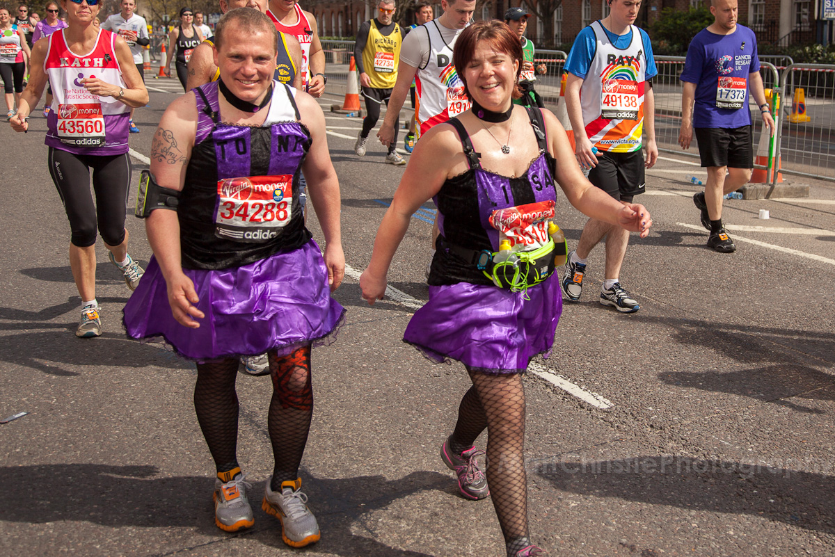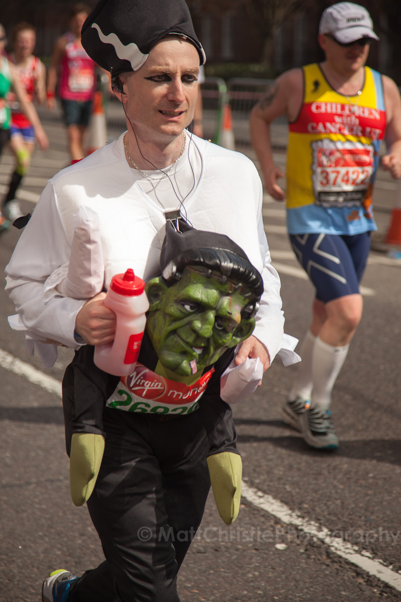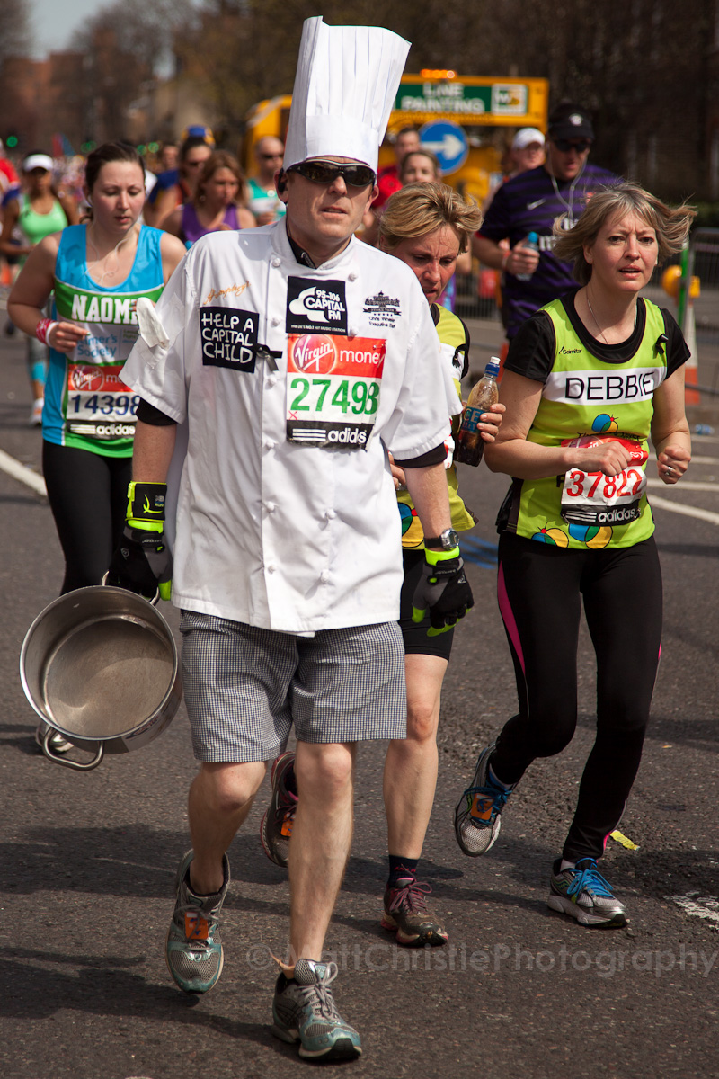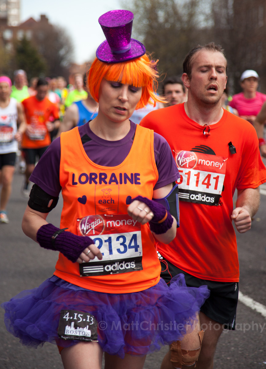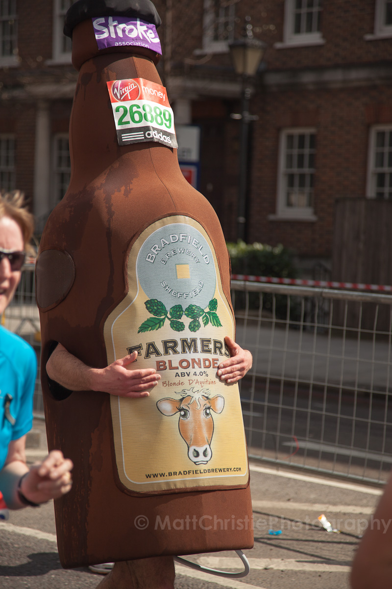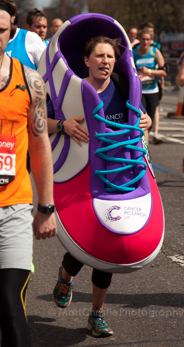 Some of the outfits were incredible, it’s hard to believe that people can run 26 miles in the first place, let alone dressed as a womble! I also saw a 7 foot fire extinguisher, an 8 foot shark, various fruit & vegetables, a honey monster, an FA Cup, several superheroes, 2 camels (someone ran 26 miles as the back end of a camel!) , some rhinos, hundreds of fairies and many many more.
