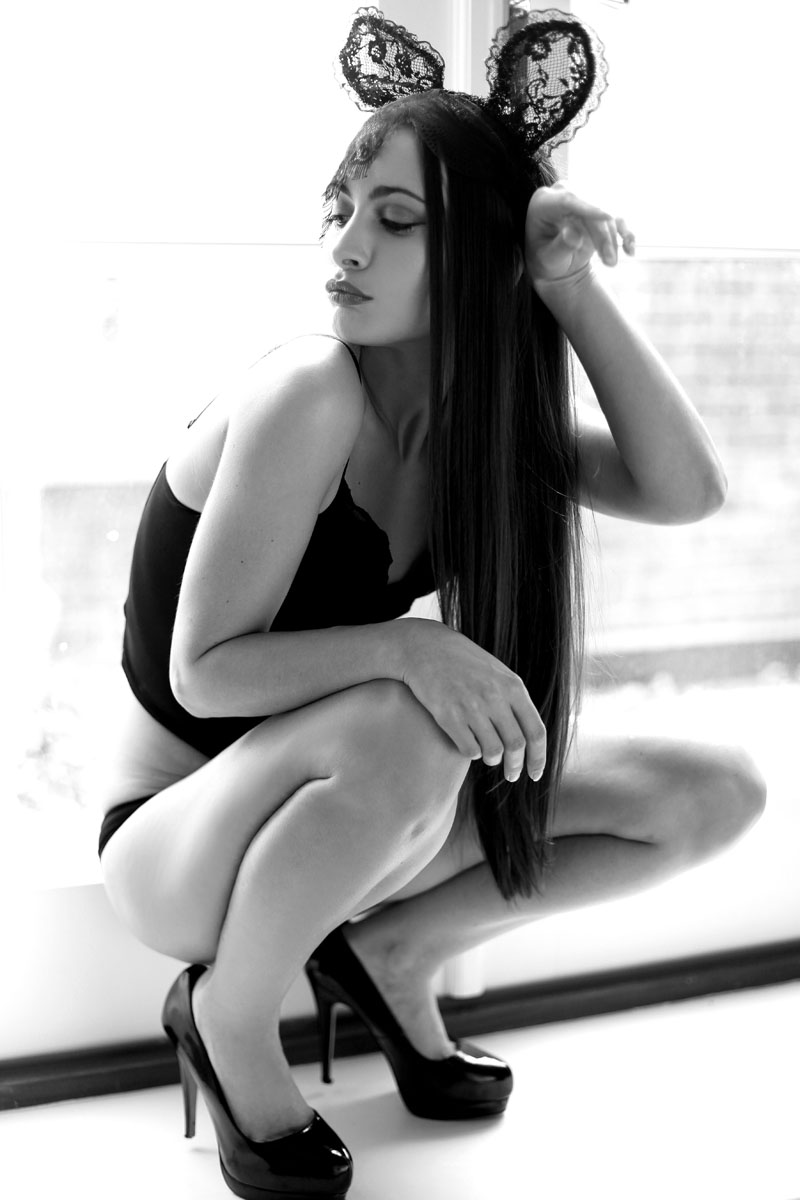 I used natural light for all but one of the shots as I wanted Claire to have plenty of freedom to move around (like a cat) & I find the light is good over a wider area with natural light than with studio lights.