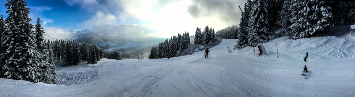 I ended up on an unexpected ski holiday last week. My niece was sadly unwell, and the trip was already paid for, so my brother invited me along. I did three ski seasons when I was much younger, but this was the first time I’d been for twenty years, so I was understandably a little rusty. There wasn’t a great deal of visibility for photos, it was mostly cloudy or snowing. It was also quite a large pain carrying the big camera around on the slopes, so I just took it up the once. I was a little disappointed not to come back with better photos, but unlike trips at ground level, I’d really have had to devote a day to just taking photos rather than skiing, so I mostly left the camera indoors.